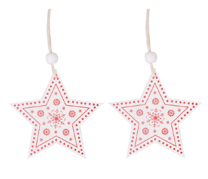 Dekorace vánoční k zavěšení dřevěná - sada hvězda 8cm, 2 ks