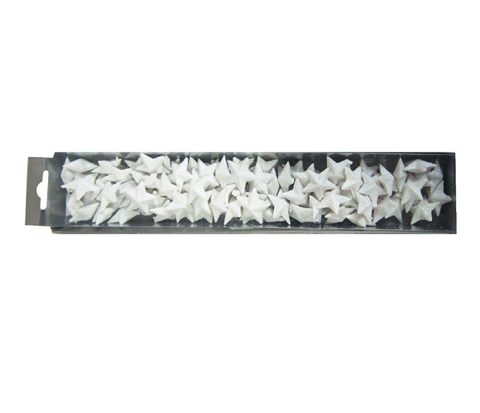 Dekorace vánoční - Hvězdičky s bílým glitrem 2 cm v krabičce 90 ks, 1955
