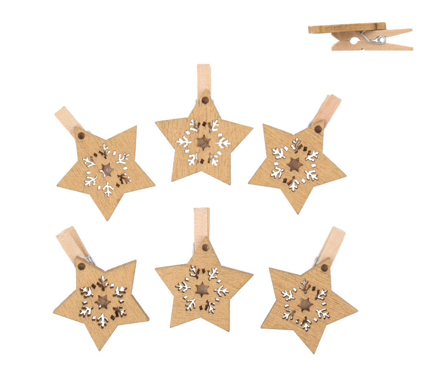 Dekorace vánoční kolíček - Hvězda dřevěná zlatá 3cm, 6ks 3068