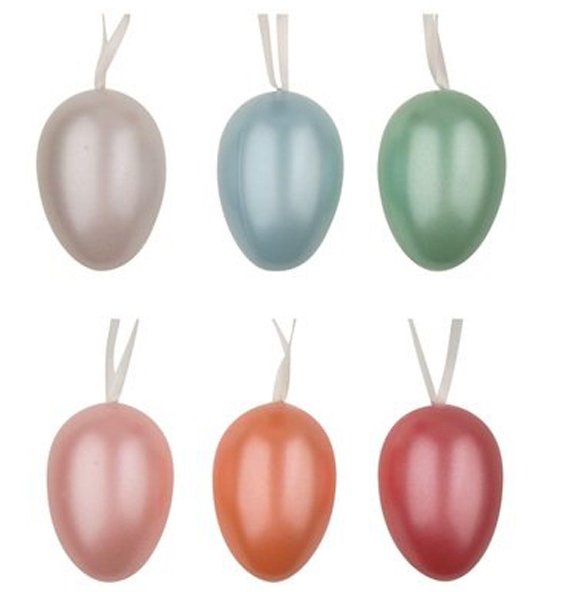 Vajíčka barevná lesklá plastová na zavěšení 6cm, 6ks v balení 9944