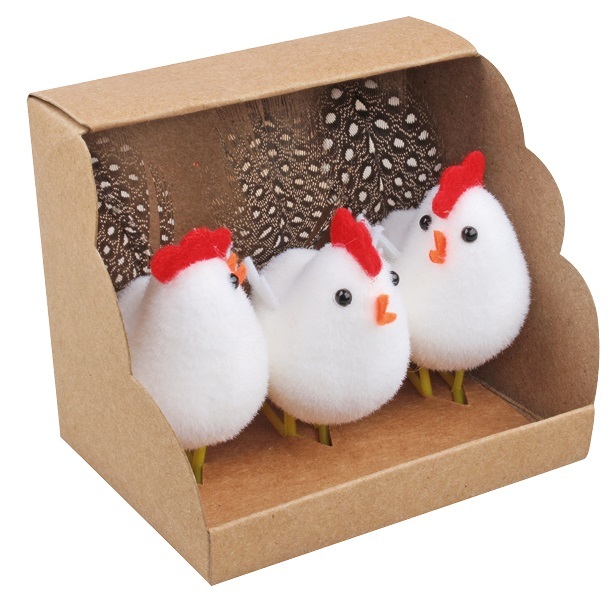 Slepičky na plastových nožičkách snadno přilepíte třeba tavnou pistolí či oboustrannou páskou.