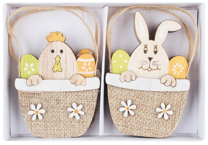 Dřevěný košík 8,5 cm, 4 ks v krabičce