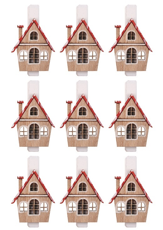 Dřevěné domečky na kolíčku červené 3 cm, 9 ks