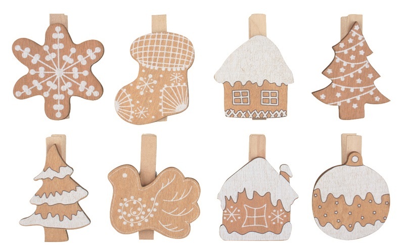 Kolíčky s motivem malovaných perníčků využijete k různým dekoračním a aranžérským účelům.