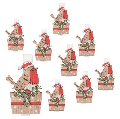Dřevění ptáčci na kolíčku, 2,5 x 3,5 x 0,3 cm - 9 ks v sáčku Dřevění ptáčci na kolíčku jsou malým, ale kouzelným detailem, který dodá vašim dekoracím přírodní a rustikální nádech. Díky praktickému kolíčku je snadno připevníte na větvičky, dárky nebo jiné výzdobné prvky, čímž vytvoříte útulnou a sváteční atmosféru. Využití: Skvělé na vánoční stromeček, adventní věnce, dárky, dekorace na stůl nebo jako součást zimních aranžmá. Lze je využít také pro kreativní tvoření s dětmi nebo na výrobu originálních dekorací. Vlastnosti: rozměry: 2,5 x 3,5 x 0,3 cmmateriál: dřevobalení: 9 kusů v sáčkuSnadné uchycení pomocí kolíčku Dřevění ptáčci na kolíčku přinášejí do vašich dekorací přírodní kouzlo a jednoduchou eleganci.