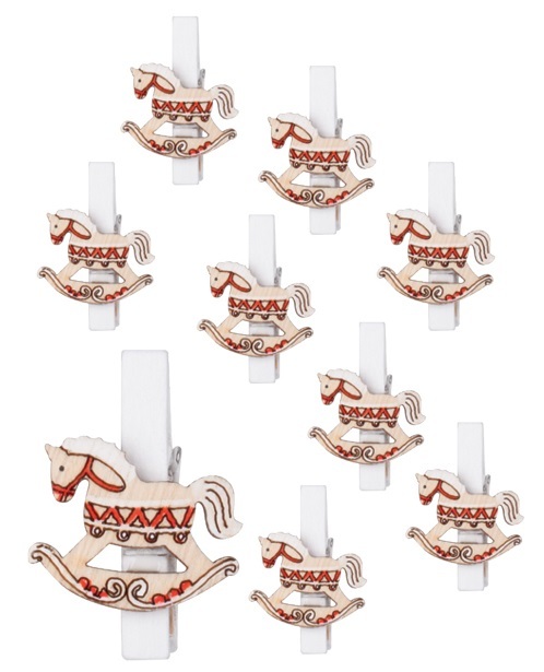 Dřevění koníci na kolíčku, 3 x 2,5 x 0,3 cm - 9 ks v sáčku Dřevění koníci na kolíčku jsou malým, ale kouzelným detailem, který dodá vašim dekoracím přírodní a rustikální nádech. Díky praktickému kolíčku je snadno připevníte na větvičky, dárky nebo jiné výzdobné prvky, čímž vytvoříte útulnou a sváteční atmosféru. Využití: Skvělé na vánoční stromeček, adventní věnce, dárky, dekorace na stůl nebo jako součást zimních aranžmá. Lze je využít také pro kreativní tvoření originálních dekorací. Vlastnosti: rozměry: 3 x 2,5 x 0,3 cmmateriál: dřevobalení: 9 kusů v sáčkusnadné uchycení pomocí kolíčkuDřevění koníci na kolíčku přinášejí do vašich dekorací přírodní kouzlo a jednoduchou eleganci.