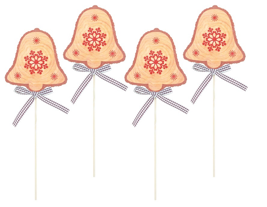 Zvonek dřevěný 8 cm + špejle, 4 ks