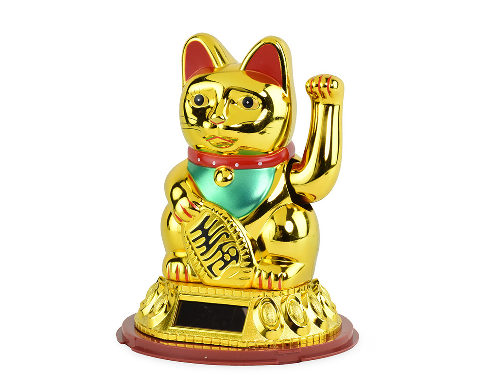 Kočka štěstí zlatá mávající solární 12 x 18 cm