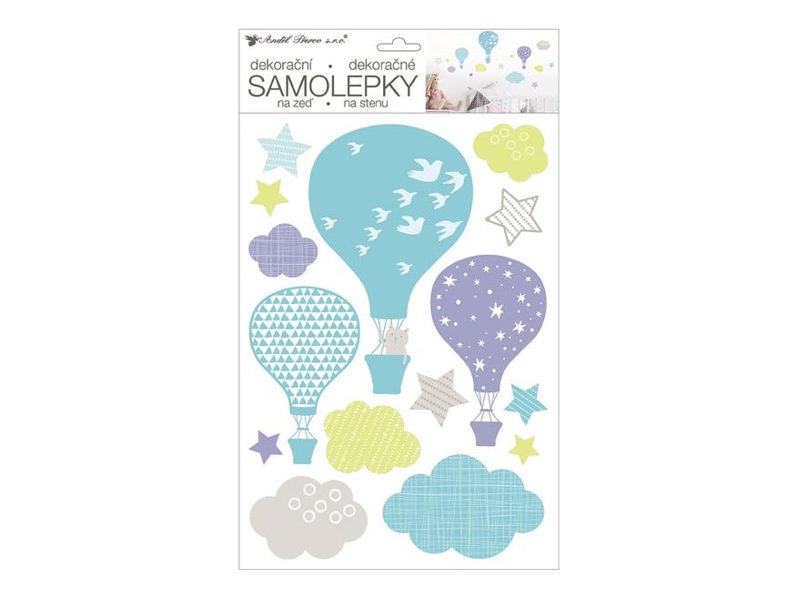 Samolepky na zeď létací balóny. Samolepky jsou vhodné na stěny, zrcadla, kachličky a jiné hladké plochy.