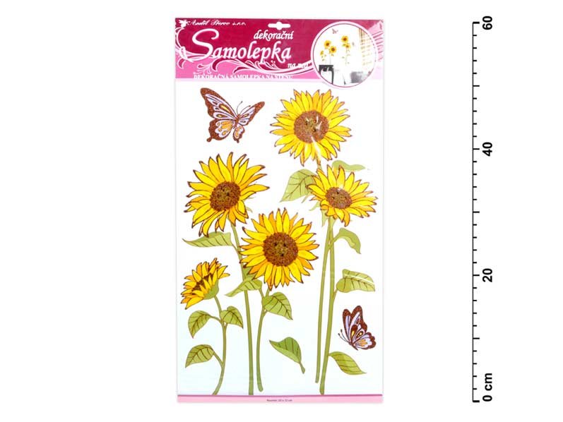 Samolepící dekorace 10031 slunečnice s motýly a glitry 50 x 32 cm