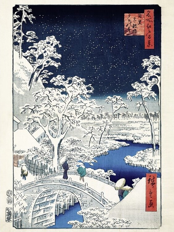 Umělecký tisk Bubnový most Meguro a kopec Sunset Hill, Utagawa Hiroshige, 30 × 40 cm