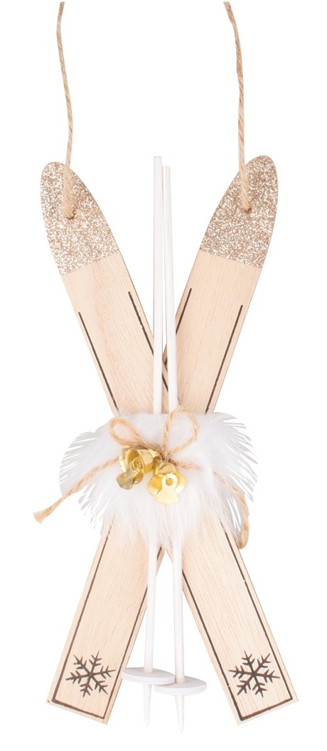Díky praktickému poutku jednoduše zavěsíte tyto elegantní dřevěné lyže na zeď, dveře nebo do okna, kde mohou zdobit vaše interiéry během celé zimní sezóny i opakovaně každý rok. Jejich zlatá barva dodává dekoraci luxusní a slavnostní nádech, který skvěle doplní vánoční výzdobu i zimní dekorace v domě.