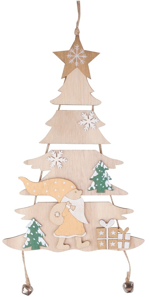Stromek se Santou zlatý na zavěšení 17 x 39 cm