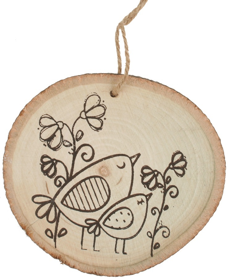 Dřevěná dekorace na zavěšení 10 cm, s ptáčky