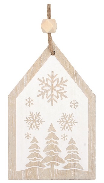 Domek s bílým potiskem dřevěný na zavěšení 7,5 x 12 x 1 cm