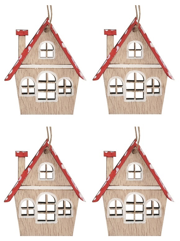 Dřevěné domečky na zavěšení červené 5 x 6 cm, 4 ks