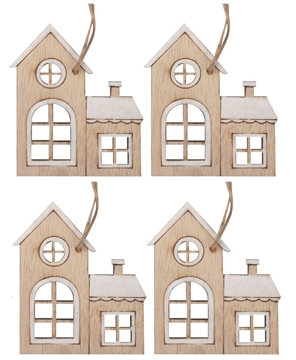 Dřevěné domečky na zavěšení bílé 5 x 6 cm, 4 ks