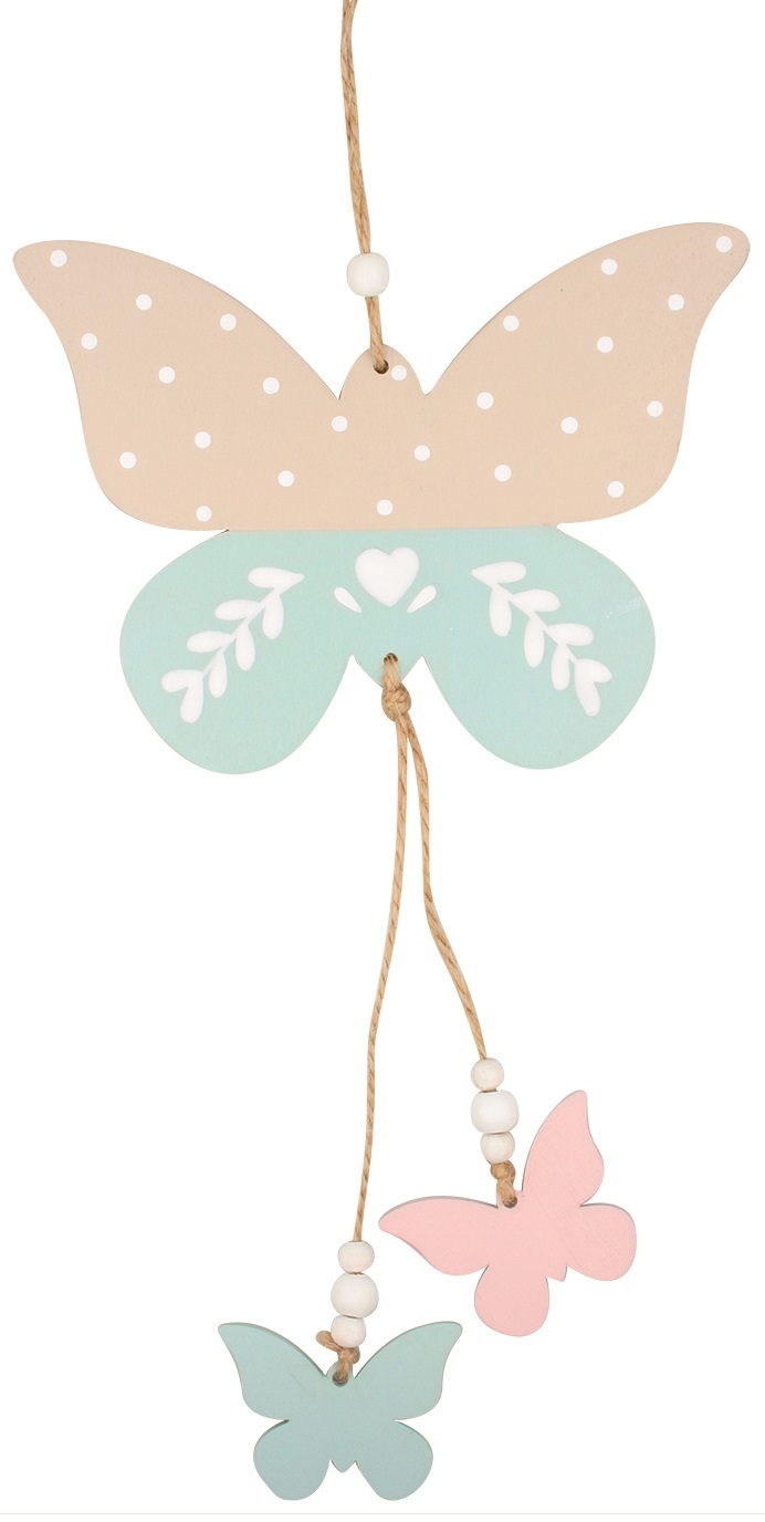 Oživte svůj domov originální dřevěnou dekorací! Tento motýlek na zavěšení přinese vašim prostorám svěžest a nenucenou eleganci.