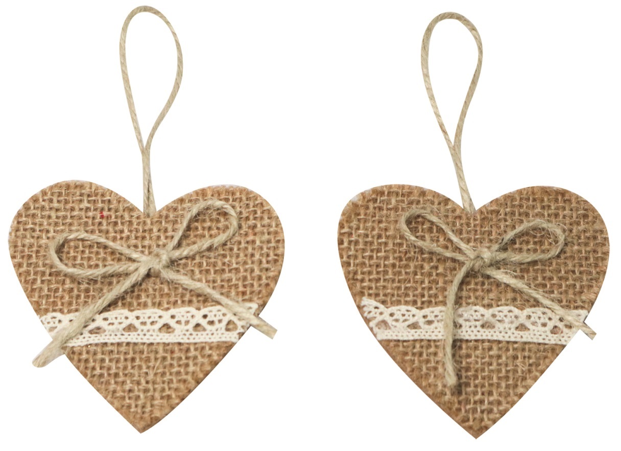 Srdce jutové s krajkou na zavěšení 7 cm, 2 ks