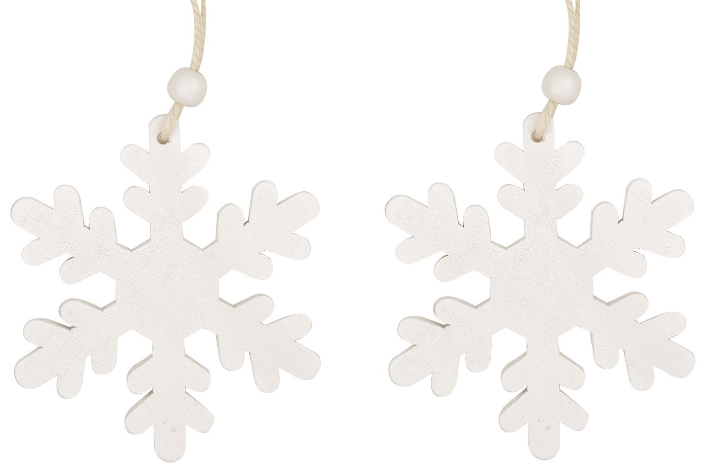 Vločka dřevěná bílá, 9 cm 2 ks, na zavěšení