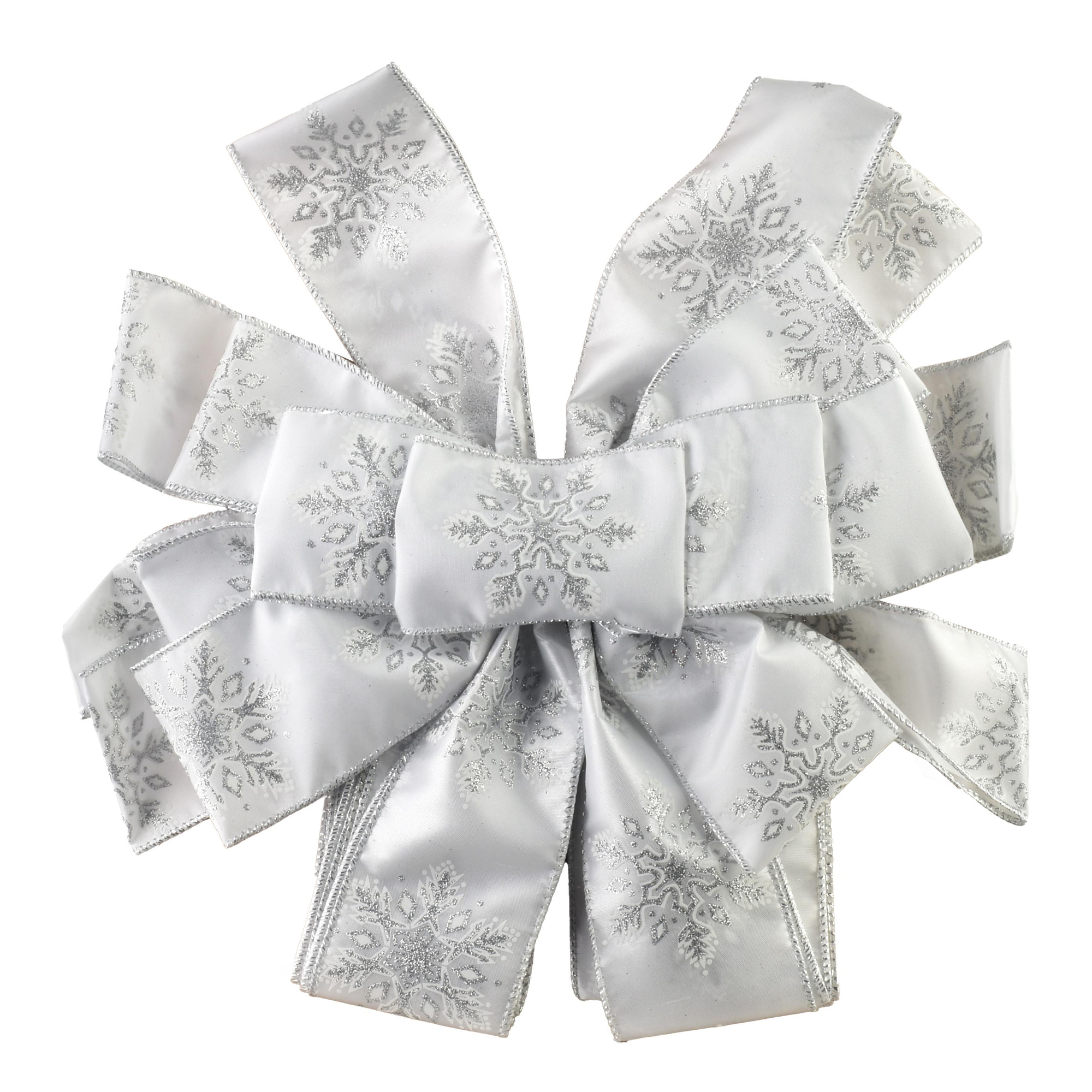 SANTA LILA Kokarda 32x130cm biała srebrn e śnieżynki