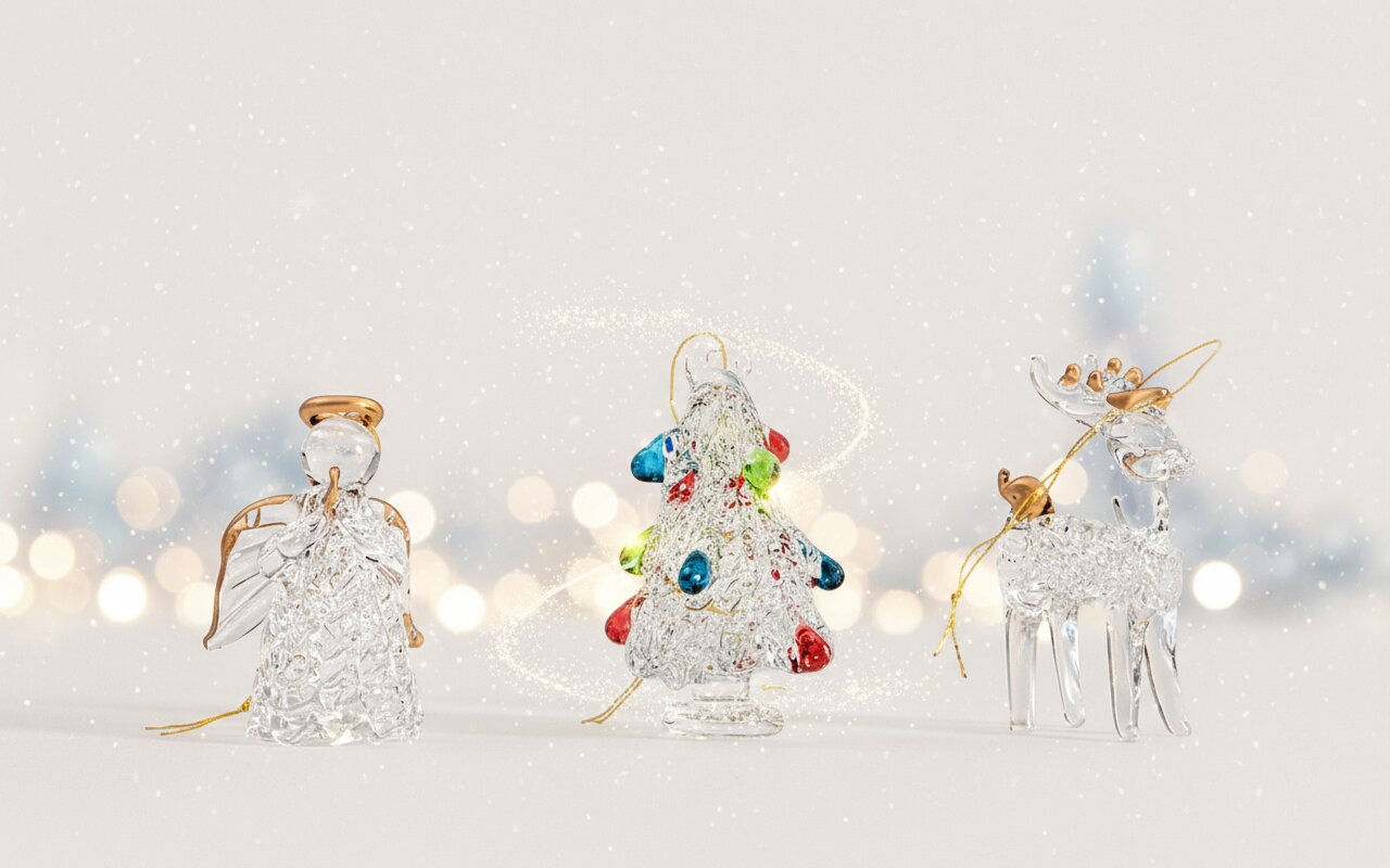Ozdoby na vánoční stromeček jsou vyrobeny z průhledného skla, které je odolné a mimořádně estetické.