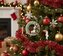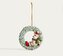 Přívěsek RENMO je veselá vánoční dekorace, která do vašeho interiéru vnáší radostnou vánoční atmosféru. Zobrazuje usmívajícího se soba, který pohodlně sedí na kulatém zeleném rákosu zdobeném cesmínovými větvičkami. Celý design je laděn v tradičních vánočních barvách, kombinujících zelenou, červenou a jemné zlaté akcenty.