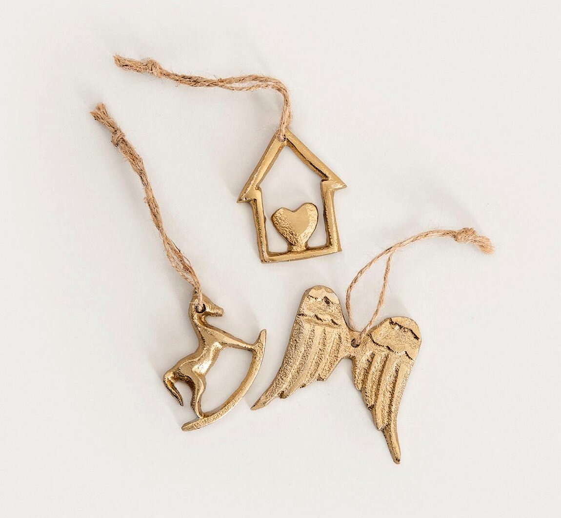 Ideální pro zavěšení na vánoční stromeček, rákos, okno nebo krbovou římsu. - Tradiční vánoční design ve zlaté barvě. - Sada kovových přívěsků, zlatá barva, 5 cm, 3 ks.