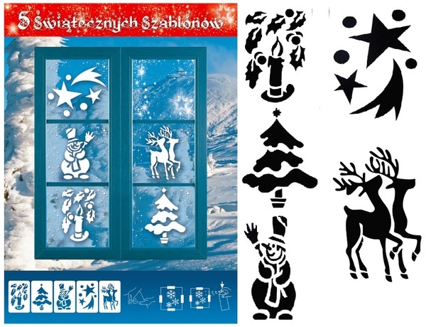 Papierowe szablony świąteczne do dekoracji okien. Zestaw 5 wzorów. Sposób pakowania 20/200 číst celé