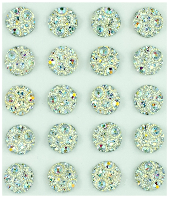 Dżety, kryształki samoprzylepne, rozmiar 12 mm. Kolor opalizujący. Blister: 7 x 8 cm. sp. pakowania 1/12/288. číst celé