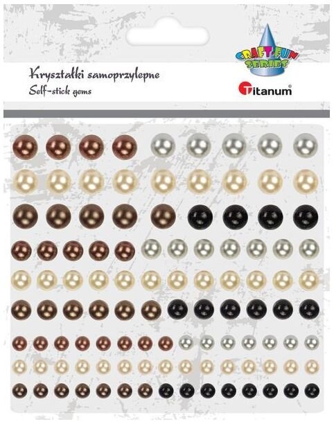 Kryształki samoprzylepne. Kształty: perełki okrągłe, kolory: srebrne, bladozłote, miedziane, czarne, średnica: 6/8/10 mm. 108 szt. číst celé