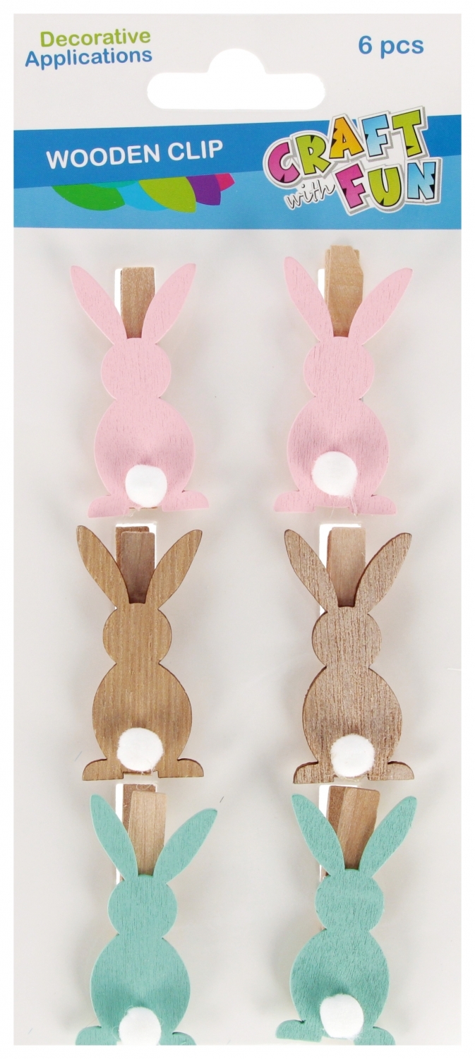 Drewniane spinacze Królik z pomponem 6szt. Wielkanoc CRAFT WITH FUN 555440