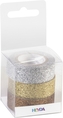 Páska lepicí papírová 3ks s glitry je ideálním doplňkem pro každého, kdo rád tvoří a zdobí svůj svět kreativně a originálně. Tato dekorační páska přinese vašim výrobkům šarm a jedinečný třpyt mědi, zlata i stříbra.