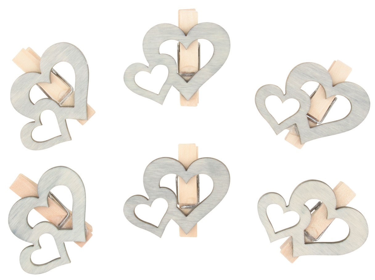 Srdíčka dřevěná na kolíčku 4 cm, 6 ks