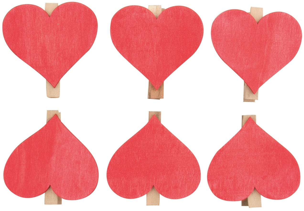 Srdce dřevěné na kolíčku 6 cm 6 ks