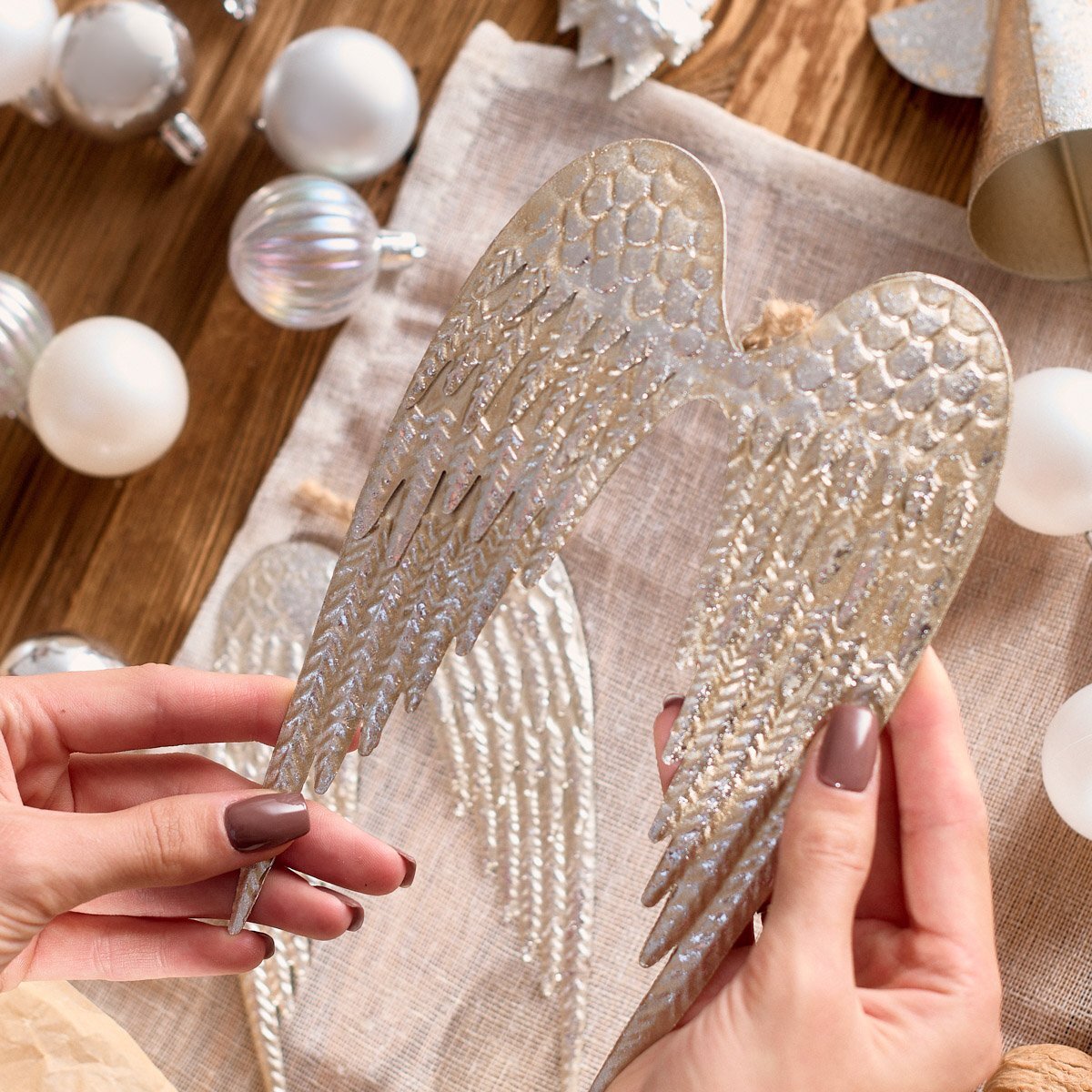 Vánoční závěsná dekorace | OLDY METAL | stříbrná křídla velká | 19 x 12,5 cm | 714337