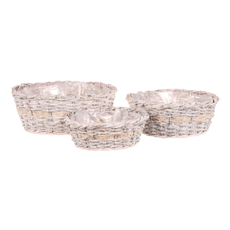 Obal na květiny - ratanový košík, bílý, cena za sadu 3 ks