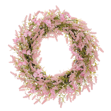 Věnec - umělé drobné květiny, pr. 50 cm, barva růžová