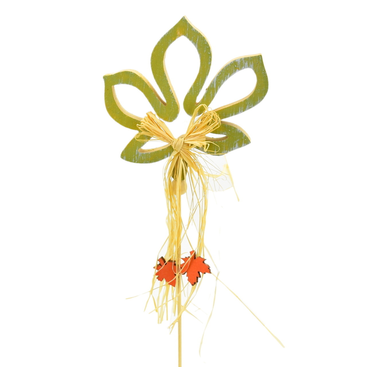 Podzim přichází a s ním krásné barvy, které dokonale oživí vaši domácnost. Nyní můžete zpestřit své prostředí dřevěným zápichem ve tvaru zeleného listu. Tento podzimní design tvoří kombinace dřeva a lýkem převázané mašle, která dodává produktu hravý vzhled. Dřevěné lístky dodávají tu správnou autentičnost. Určitě si ho zamilujete.