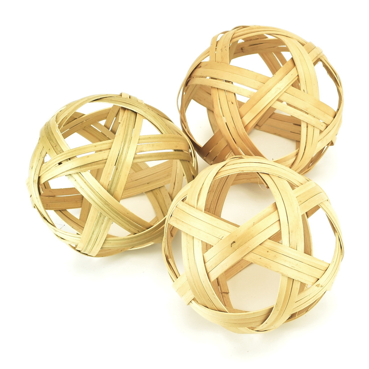 Bambusové dekorační koule přírodní, 3 ks, Ø10 cm