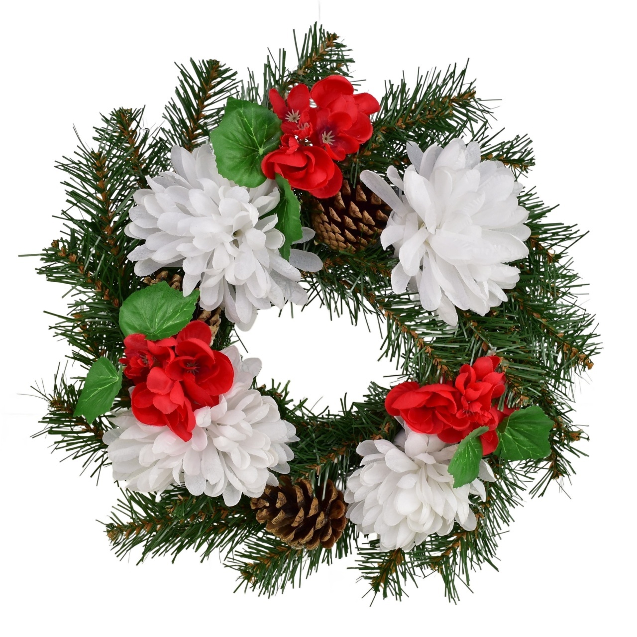 Věnec o průměru 27 cm je vyroben z kvalitního umělého chvojí, což zaručuje zachování jeho tvaru a barev po dlouhou dobu. Bílá chryzantéma, doplněná jemnými červenými kvítky, vytváří decentní a zároveň výraznou kombinaci, která je vhodná zejména pro smuteční příležitosti či jako věnec na hrob. Díky použití umělých materiálů si můžete být jistí, že věnec odolá povětrnostním vlivům a neztratí svůj vzhled ani po delším umístění venku.