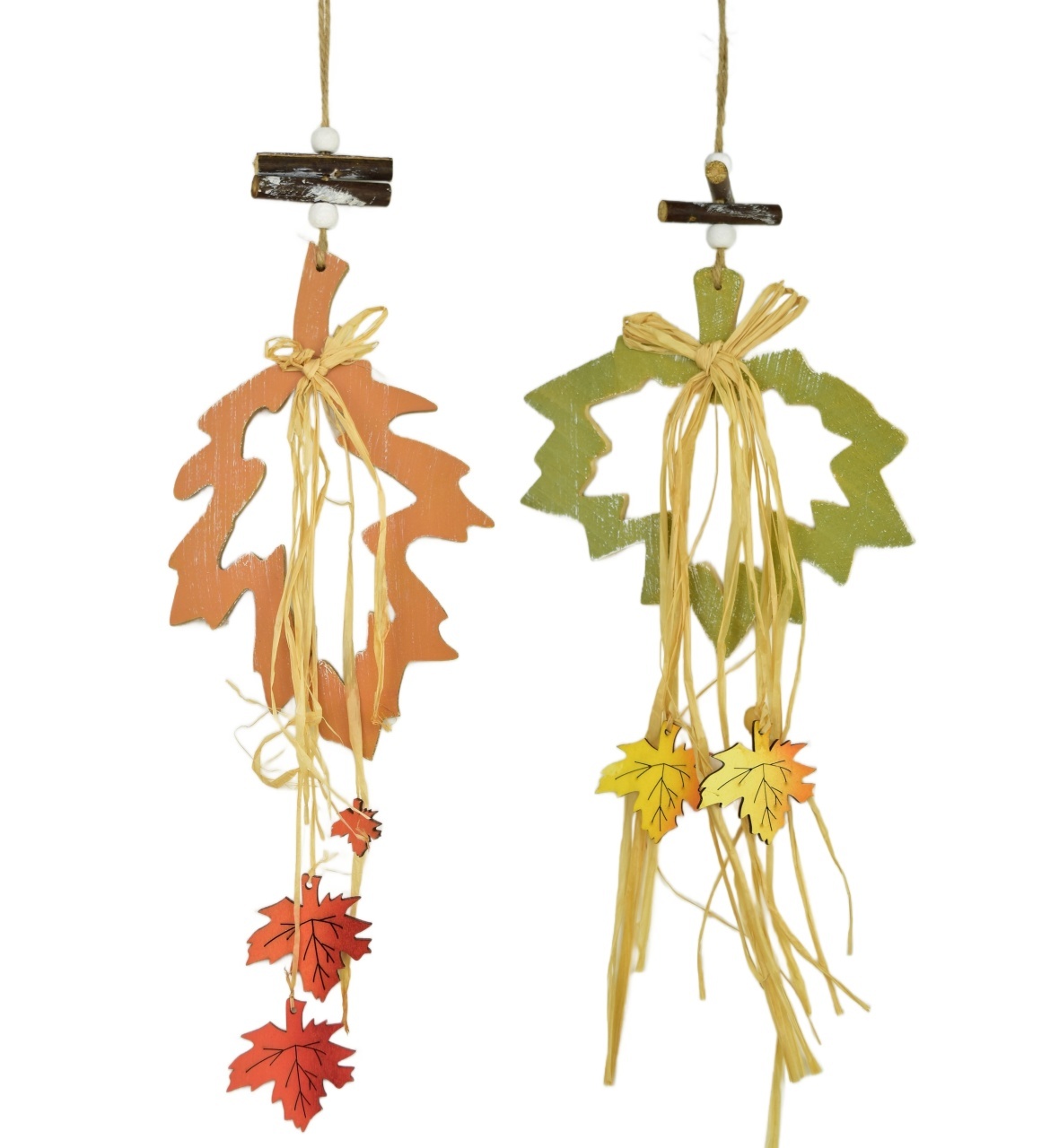 Dřevěný list závěs oranžový a zelený, set 2 ks