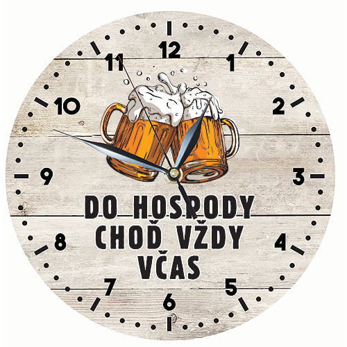 Dřevěné hodiny s potiskem - do hospody choď vždy včas