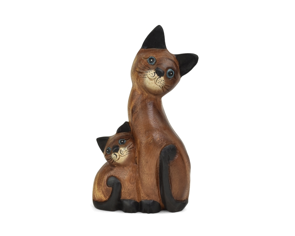 Dřevěná dekorace Kočka s kotětem 27 cm