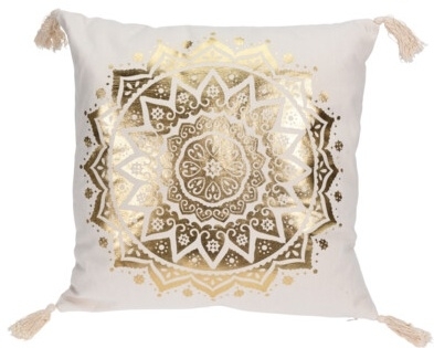 Stylový polštář s potiskem. Mandala je nadčasový symbol jednoty a rovnováhy. Mandala je také diagram, který ukazuje jak se chaos stává harmonickou formou.