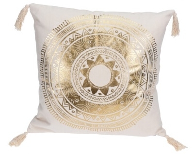 Stylový polštář s potiskem. Mandala je nadčasový symbol jednoty a rovnováhy. Mandala je také diagram, který ukazuje jak se chaos stává harmonickou formou.