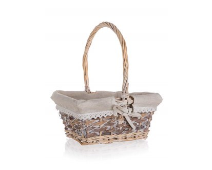Košík proutěný s držadlem DUO o rozměru 22,5 x 19 x 10,5 cm je vhodný pouze pro dekorativní účely. Dodáván v hnědobílé barvě obdelníkohévo tvaru, uvnitř přírodní látka s krajkovým lemem. číst celé