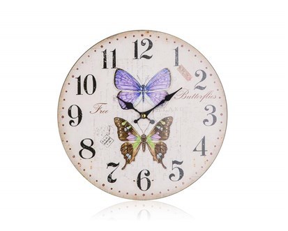 Nástěnné kulaté hodiny BUTTERFLIES o průměru 34 cm s celoplošným dekorem jsou skvělý pomocník do domácnosti, ale slouží také jako dekorace interiéru. Hodinový strojek je napájen jedním kusem baterie AA (není součastí balení). V nabídce další dekory. číst celé