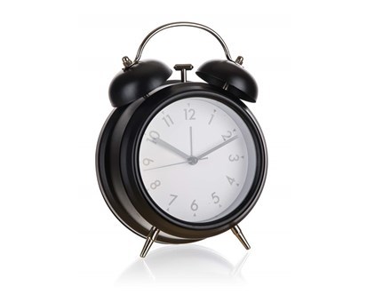 Klasický budík s dvěma zvonky 15 x 20 x 6,8 cm v černé barvě je skvělý pomocník i dekorace interiéru. Hodinový strojek je napájen jedním kusem baterie AA (není součastí balení). V nabídce také další hodiny a budíky.