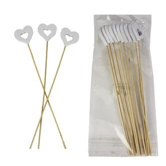 Sada dekoračních zápichů - srdce. Sada obsahuje 10 zápichů. Zápichy mají šířku 5 cm, tloušťku 0,6 cm, výšku 4,5 cm, celková délka zápichu 32 cm. Barva : bílá. Materiál na bázi dřeva.